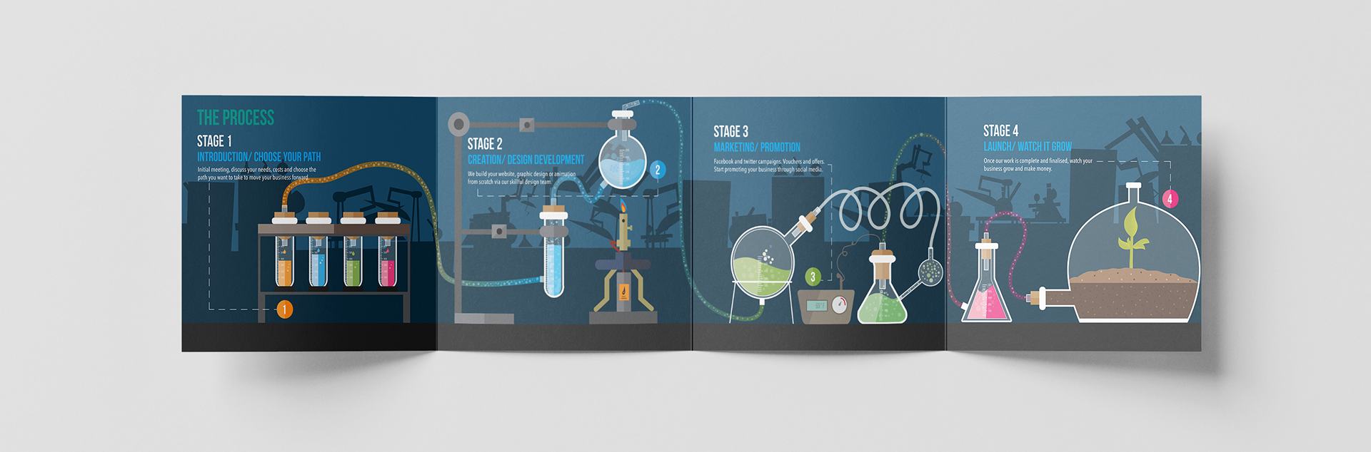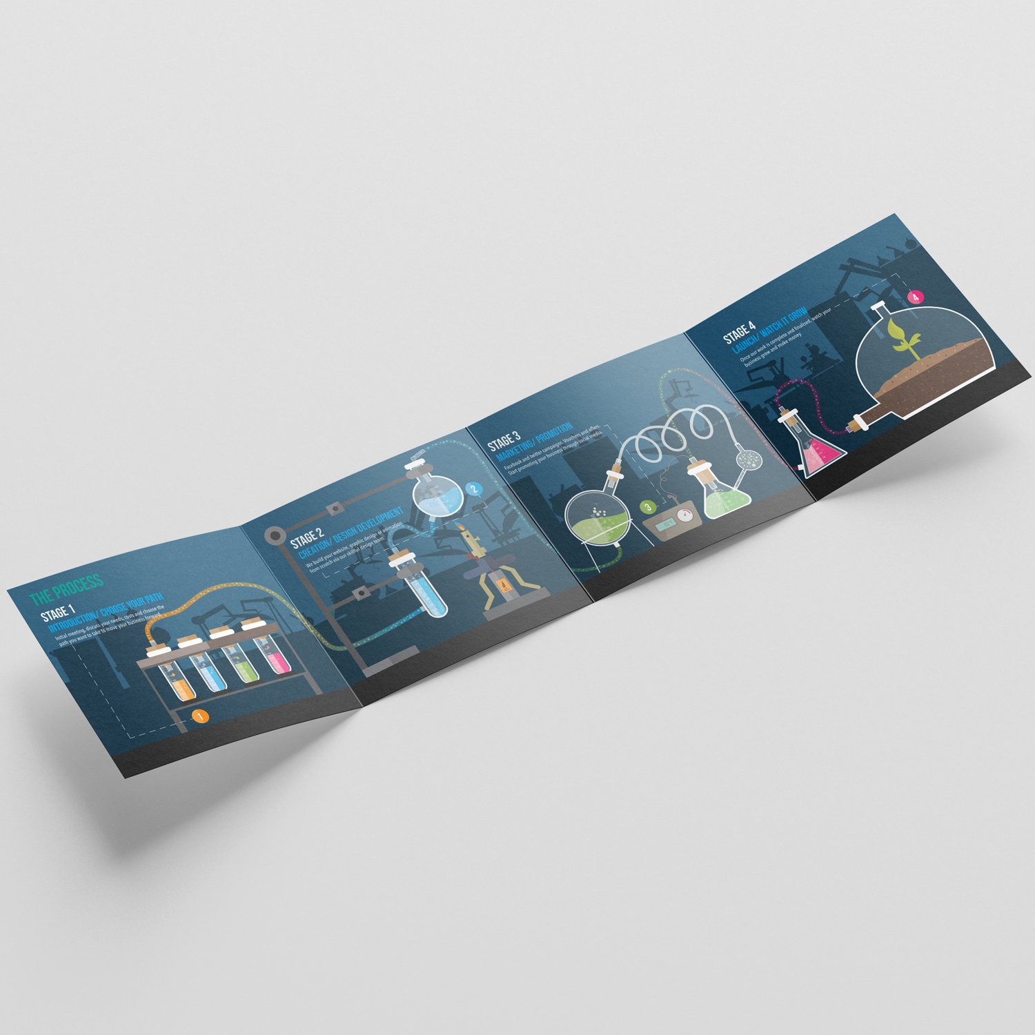 Ineek required an explainer-style infographic to communicate their digital marketing process to local businesses. I designed a four-fold leaflet using a clear, illustrative approach, creating a visual narrative that broke the process into four simple steps and supported both print distribution and digital touchpoints.