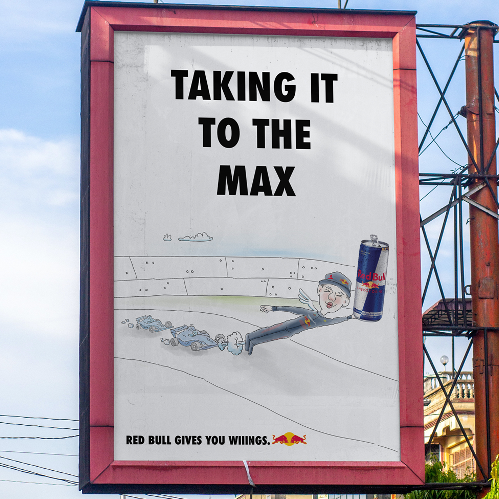 Project Overview: Red Bull required a series of billboard and digital signage concepts created in their established line-art style. I developed a set of visuals and messaging that aligned with the brand’s tone, exploring a motorsport-inspired idea to promote the product across large-format and digital environments.